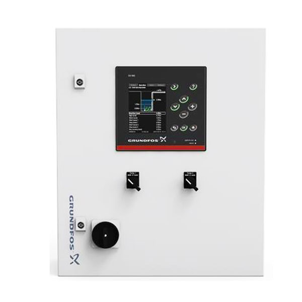 Шкаф управления имеет в своей комплектации устройство управления CU 362 – это встроенный контроллер и панель управления с удобным интерфейсом. Этот компонент устанавливается на передней части шкафа. С помощью него можно следить за работой подключенного насоса. Управление насосами и устройством CU 362 происходит в соответствии со встроенными алгоритмами и осуществляется через входы и выходы IO 351B. Насос запускается по методу прямого пуска.