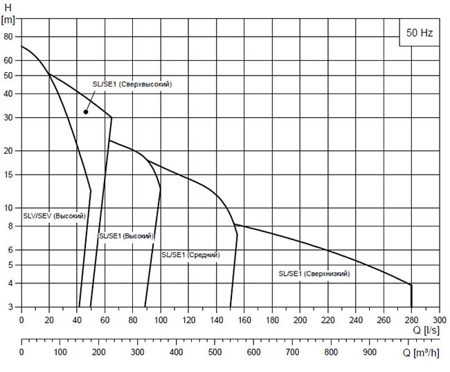 Диаграмма рабочих характеристик Grundfos SE, SL (9 - 30 кВт)