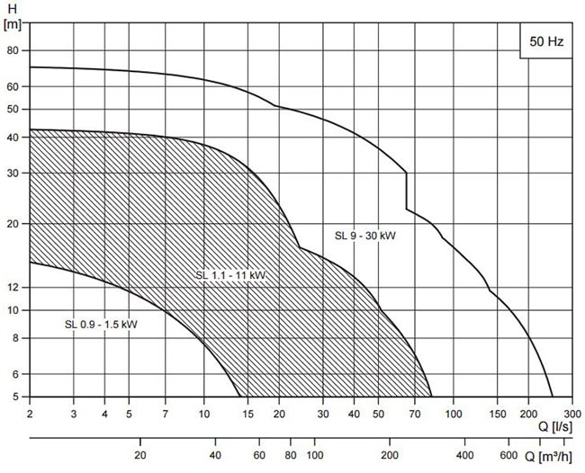 Диаграмма рабочих характеристик Grundfos SL1 и SLV