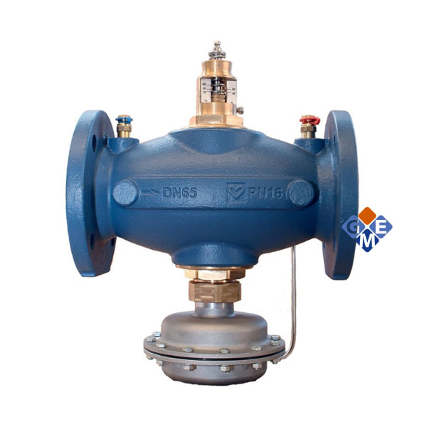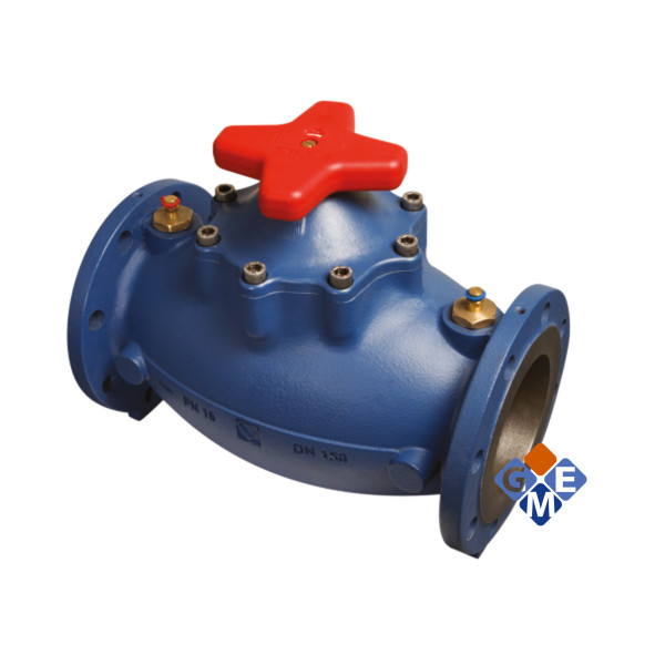 HERZ Комби-клапаны – регулятори расхода F400662 – для гидравлической балансировки в системах отопления или охлаждения, регулировки и перекрытия трубопроводов, стояков, теплообменников, регистров отопления и охлаждения. Шпиндель прямой, корпус из чугуна, фланцевое исполнение EN 1092, PN 16, синего цвета. Буксы клапана до DN 100 из латуни, резьбовое соединение, от DN 100 буксы клапана из чугуна, с невыдвижным шпинделем. Уплотнение шпинделя посредством двойного кольцевого уплотнения. Предварительная настройка выполняется из-за ограничения хода с помощью внутреннего шпинделя, цифровые показания степени предварительной настройки считываются в окошке маховика. Два измерительных клапана монтируются сверху, с обеих сторон маховика.
