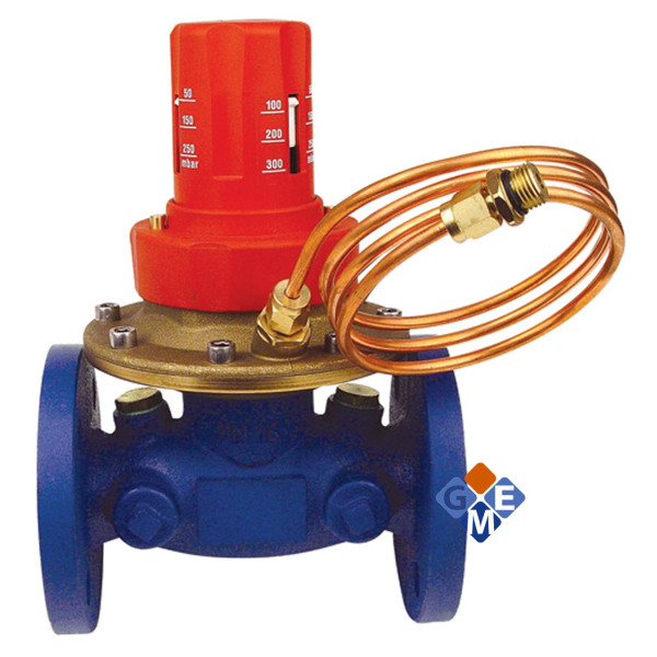 HERZ Регулятор перепада давления 4007F – пропорциональный регулятор прямого действия (работает без дополнительной энергии), поддерживающий на заданном уровне перепад давления на гидравлическом сопротивлении (например, регулировочном клапане или расходомерной шайбе) или участке системы (например, стояке или приборной ветке). Необходимое значение перепада давления настраивают бесступенчато в диапазоне от 5 до 30 кПа или от 25 до 60 кПа. Необходимое значение настройки определяют по расчетным параметрам расхода и необходимому перепаду давления с помощью диаграммы. Заводская настройка регулятора – минимальное значение диапазона. Необходимое значение настройки устанавливают с помощью специального ключа (1400602) или вручную. В комплект поставки входит импульсная трубка (1000 мм), которую необходимо подключить к клапану спутника, который устанавливают на подающем трубопроводе.