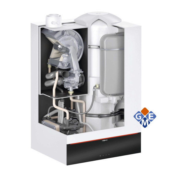 Viessmann VITODENS 222-W газовый конденсационный комбинированный настенный котел с модулированной горелкой MatriX-Plus, для режима с отбором воздуха для горения из помещения установки и снаружи. В качестве топлива применяется природный газ также возможно применение сжиженного газа, допустимое рабочее давление водогрейного котла 3 бар (0,3 МПа), допустимое рабочее давление соответствующего емкостного водонагревателя 10 бар (1 МПа), Цвет: жемчужно-белый Vitopearlwhite, идентификатор изделия2: CE-3.
