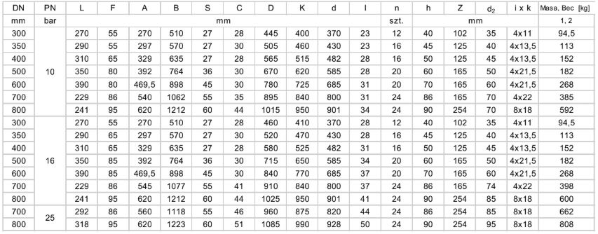 - Фланцевое соединение согласно PN-EN-1092-2:1999