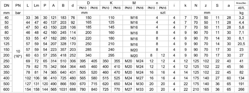 - Фланцевое соединение согласно PN-EN-1092-2:1999