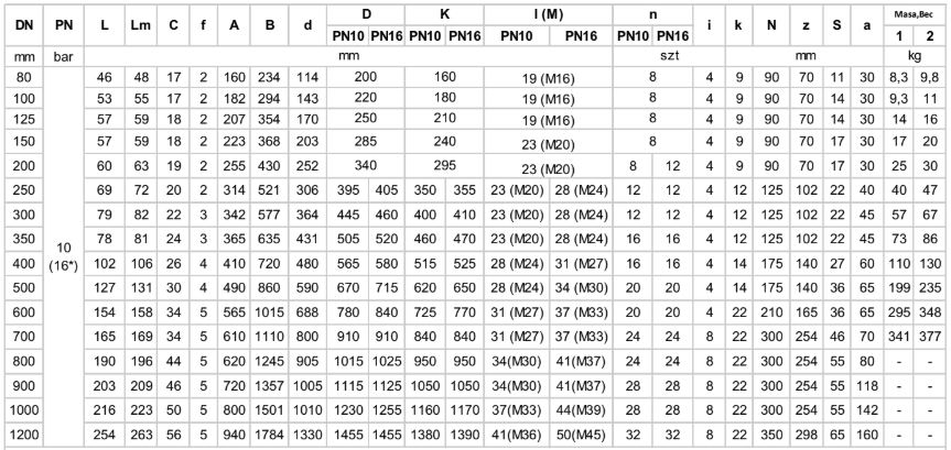 - Строительная длина согласно PN-EN 558-1:2001