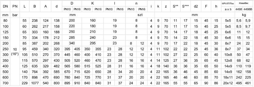 - Фланцевое соединение согласно PN-EN-1092-2:1999