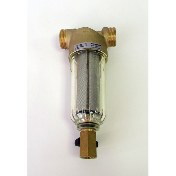 Honeywell/RESIDEO FF06-3/4AA применяется для очистки водопроводной воды от механических загрязнений, в том числе таких как: крупинки ржавчины, песок, пакли и тд. Отфильтрованные инородные тела оседают на дне фильтра. Этот осадок удаляется при ручной промывке. Корпус выполнен из латуни, стакан - прозрачный.