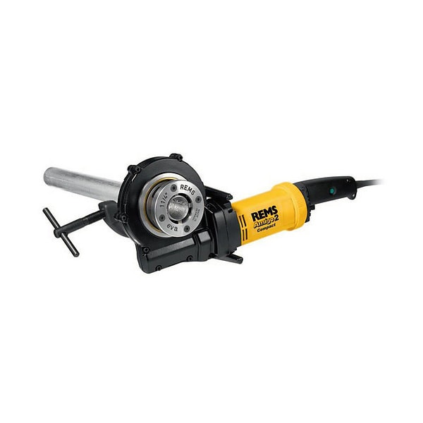 REMS Амиго (370013) – электроинструмент для нарезания резьбы; эксплуатируется без использования тисков – труба закрепляется за счет зажимного, наклонного шпинделя. Агрегат немецкого производителя, малый, компактный, мощный, удобный и высокопроизводительный.