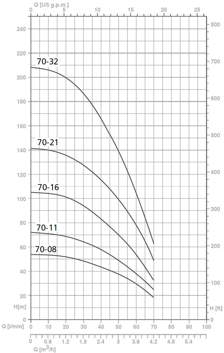 Модели серии SPM/SPT представлены на рынке в 2-х вариациях подключения к сети 230В и 400В. Максимальная производительность насосов составляет 3м/час, а максимальный напор 267м.